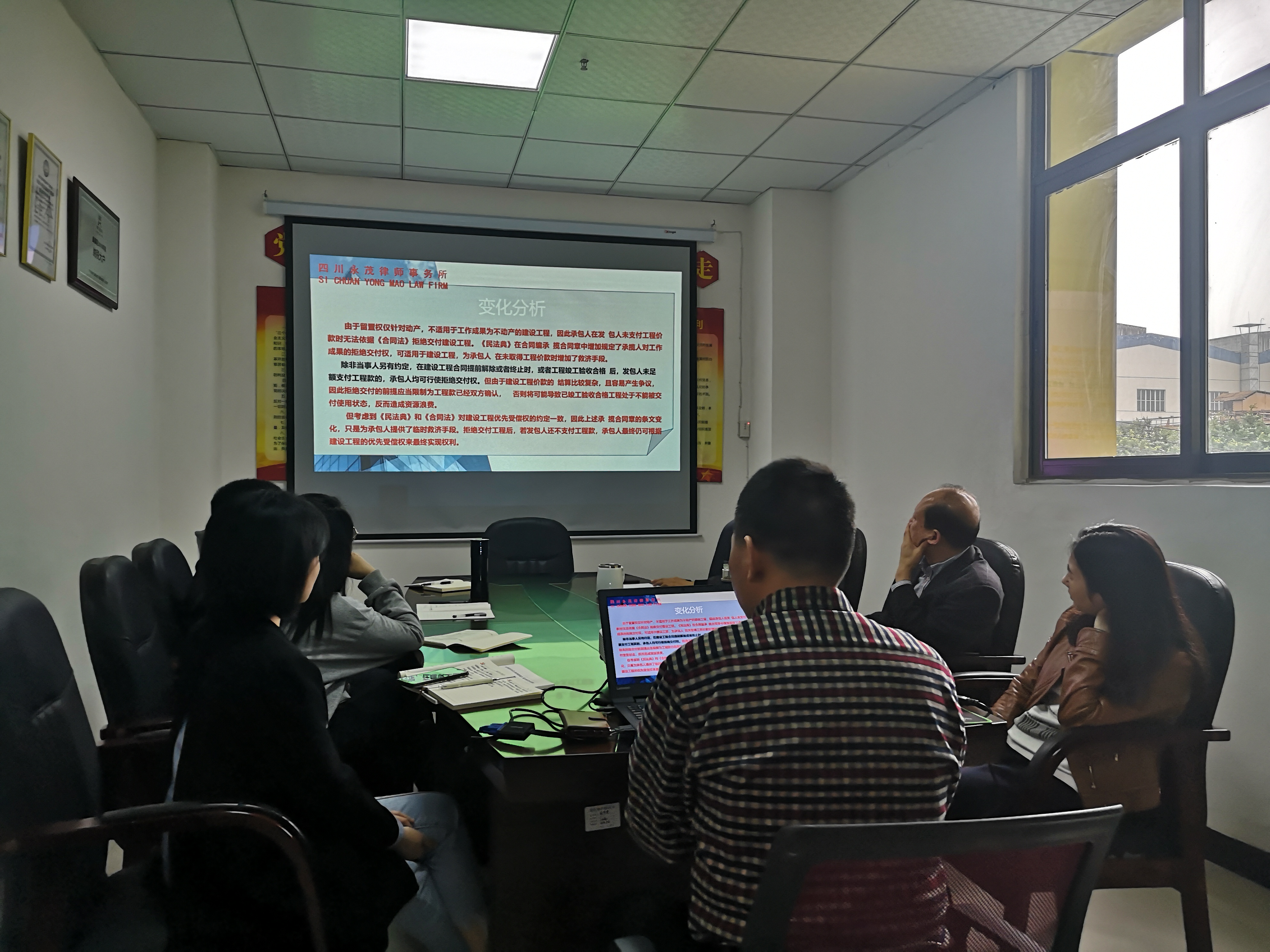為了進一步加強對職工的法律知識教育,規范業務工作中涉及的法律行為,增強公司抵御風險的能力,形成學法、懂法、用法、守法的良好氛圍,10月23日,公司再次舉辦了《民法典之合同編》專題講座,邀請公司法律顧問、四川永茂律師事務所主任律師周永孟擔任講師,公司領導及職工代表共計17人參與。