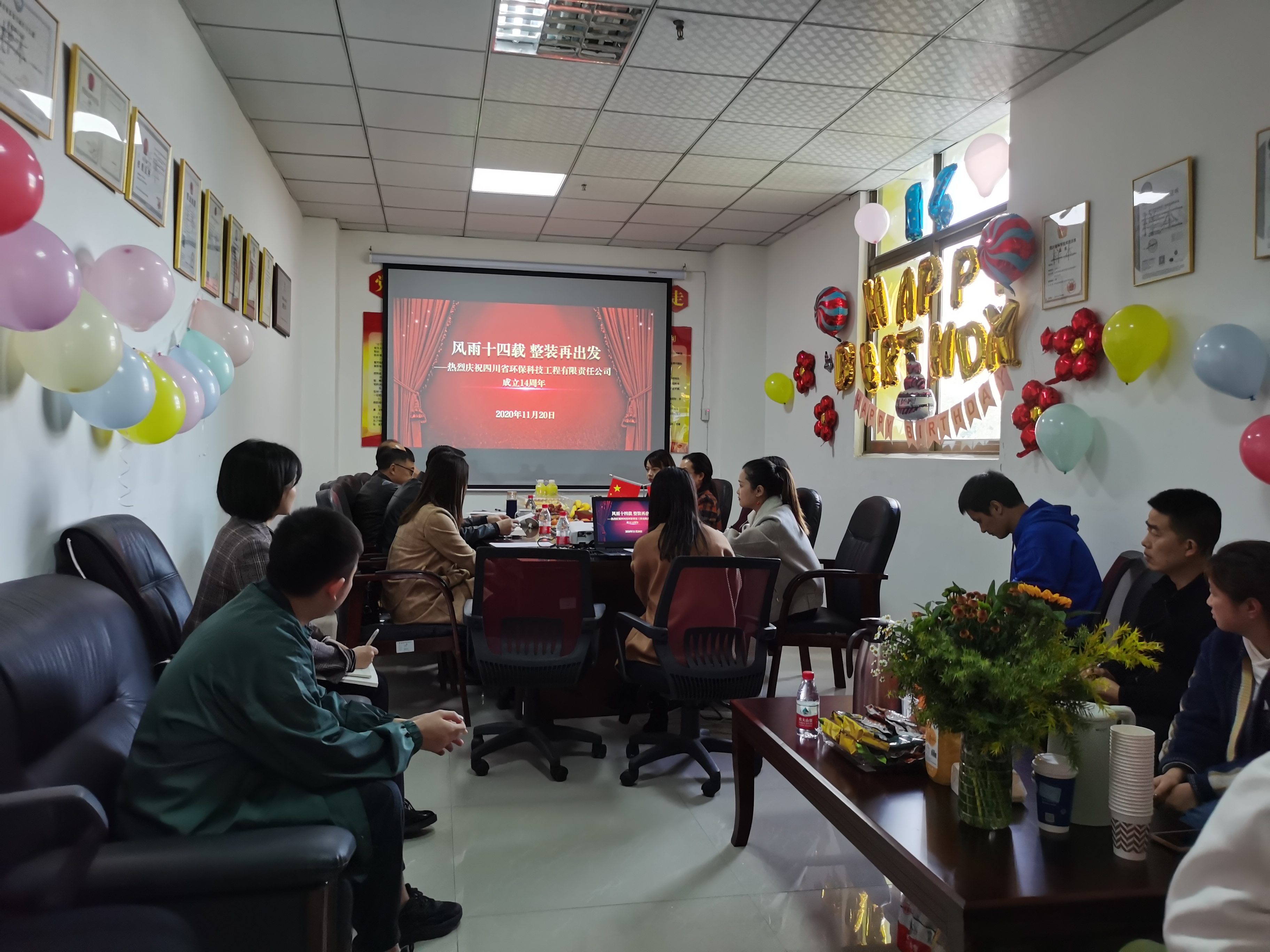 時光荏苒、歲月如歌,2020年11月20日,公司迎來了成立14周年紀念日。為了紀念這個特殊的日子,公司舉辦了紀念日茶話會,公司領(lǐng)導及職工代表參與,環(huán)科院黨委書記、副院長錢駿,環(huán)科院紀委書記、副院長龍泉,環(huán)科院人事處處長劉思宇出席活動。