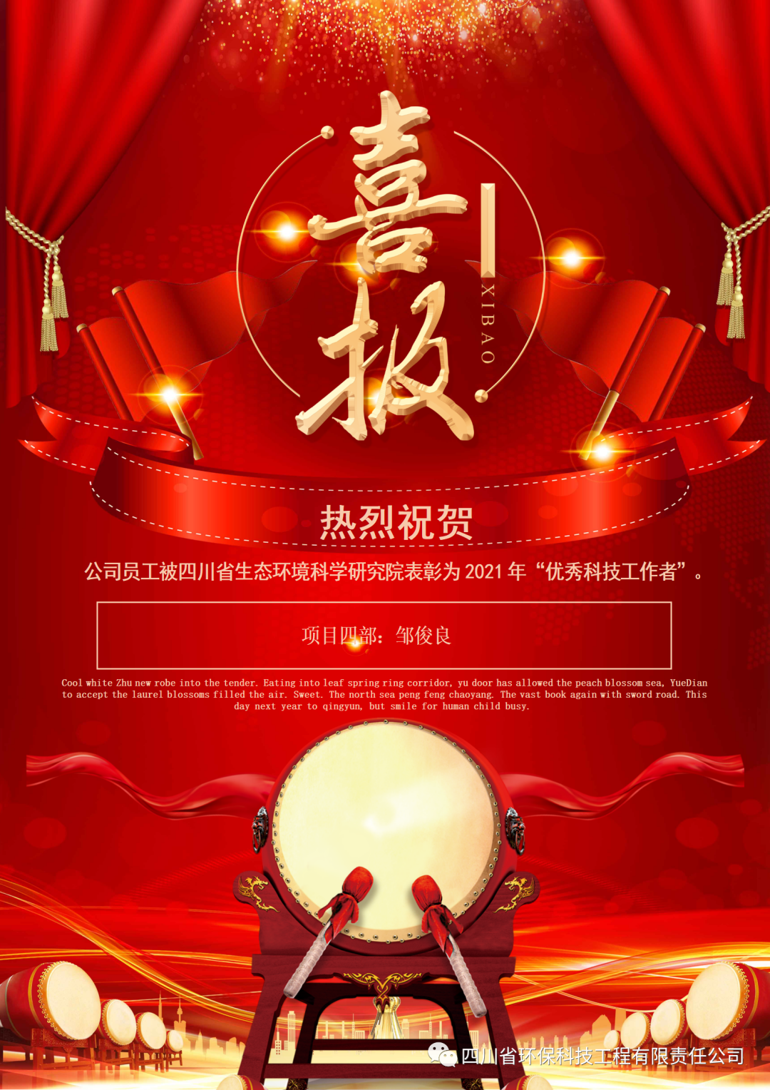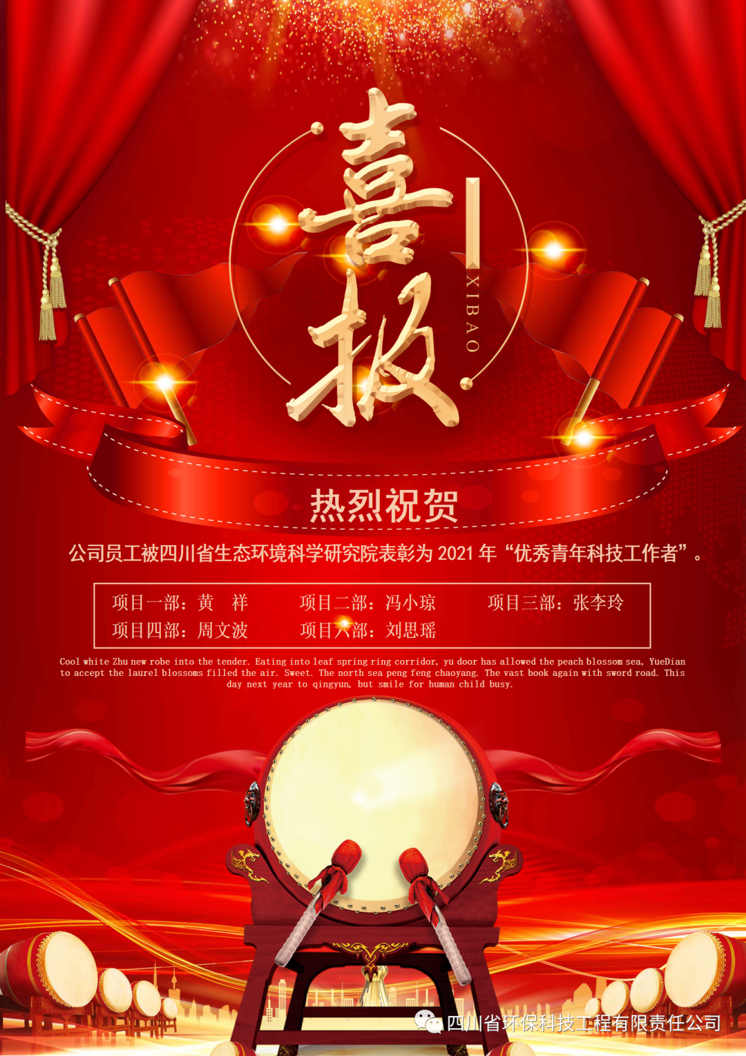 熱烈祝賀:公司員工馮小瓊等6人獲四川省生態(tài)環(huán)境科學(xué)研究院表彰
